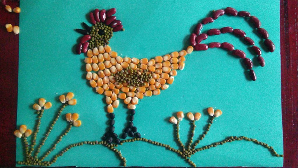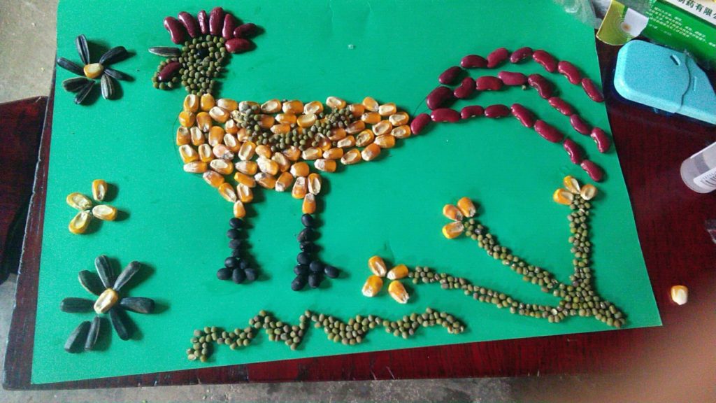 Mrs. Mrs. Zhang showed the students how to make a rooster mosaic during the class. Days later, she received the feedback from the principal and was wowed by how creative the students were. They were not limited to what Mrs. Zhang used in the class. They used whatever they can find at home such as corn, sunflower seeds and mung beans. Each rooster looks unique and beautiful. We’re very proud of them!